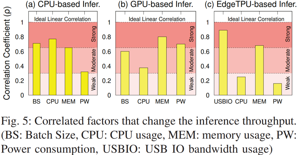 성능과 가장 큰 상관 관계를 보였으며 GPU-based inference(J.nano, J,TX2)의